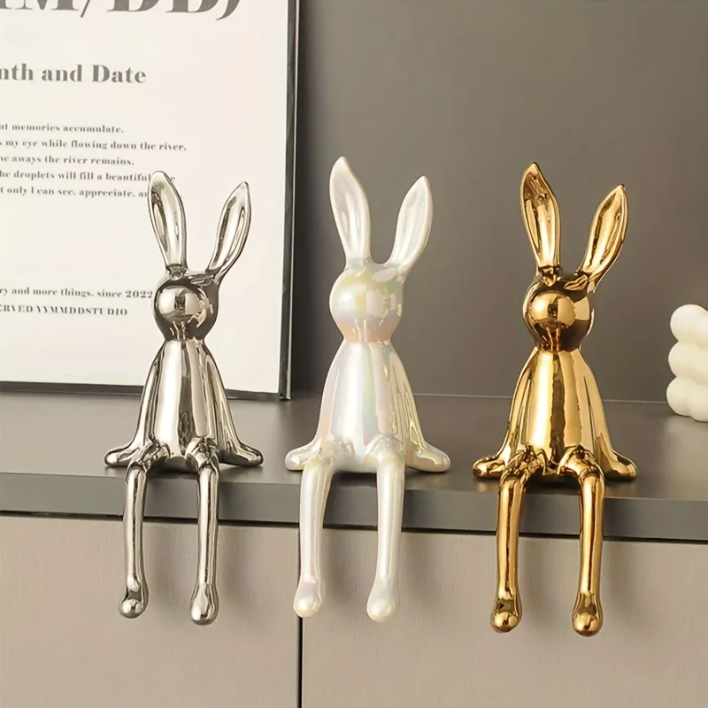 Estatua de conejo cerámica orejas largas